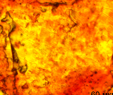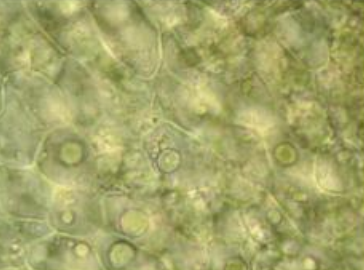 Fig. 1: Light microscopy identification of Lycium barbarum fruits from 1) American Herbal Pharmacopoeia and 2) Microscopy Lycium barbarum sample. a-endosperm of thin-walled cells with oil droplets; b-exocarp showing prominent parallel cuticular striations