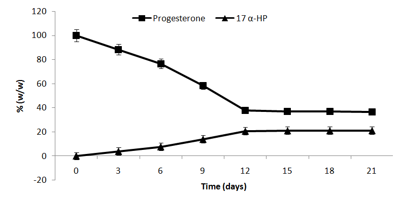 To attain the maximum biotransformation yield, we observed the effects of various parameters viz. precursor (progesterone) concentration, incubation time, pH of the medium and carbon sources on biotransformation of progesterone, which impact the production of metabolites.