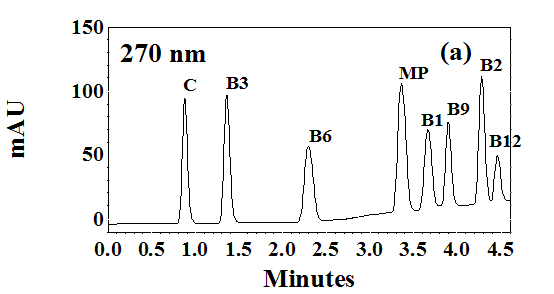 Simultaneous determination of water-soluble vitamins is complicated by many factors. First of all, due to their diverse chemical properties, it is difficult to separate all of them in one chromatographic run. On the other hand, their difference in solubility and stability presents another challenge with the optimization of sample preparation procedures. Furthermore, these vitamins are added into pharmaceuticals and fortified food products at different amounts.