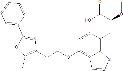 We used aleglitazar (Roche, Basel, Switzerland) with a half-maximal inhibitory concentration (IC50) value of 0.019 µM as a standard drug for DM. We collected data for aleglitazar from PubChem (https://pubchem.ncbi.nlm.nih.gov/), which provides validated chemical structures and detailed information of drugs, and which is organized by the US National Institutes of Health (Bethesda, MD, USA) [38]. Aleglitazar is a type of sensitizer used for T2DM treatment to reduce the complications of cardiovascular morbidity and mortality. In T2DM patients, aleglitazar can control levels of lipids and glucose in a synergistic manner while eliciting limited side effects and toxicity. [38] We designed and evaluated novel candidate compounds based on a comparison with aleglitazar.