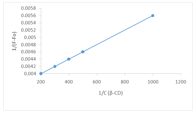 Fig. 2: Double reciprocal plot obtained from 1/(F-F0) plotted against 1/C β-CD
