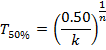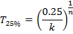 To characterize the drug release rate in different experimental conditionals like T25%, T50% and T80% were calculated from dissolution data according to the following equations: