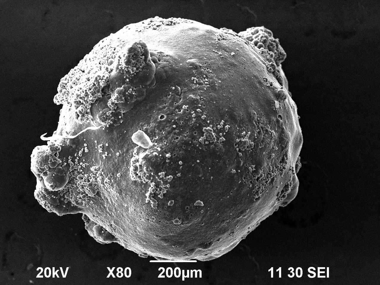 The surface topography of the microspheres was investigated by SEM. As seen in fig. 6, they were spherical in shape and exhibited porous surfaces. The SEM of drug-loaded microspheres in fig. 6b had rough surface due to higher concentration of drug in the microspheres as compared to the blank microspheres fig. 2a. Surface study of the microspheres after release study showed bigger pores (fig. 2c) suggesting that the drug was released through pores and the mechanism of drug release was diffusion controlled.