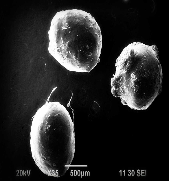 Surface nature of microspheres was examined with the help of Scanning Electron Microscope (JEOL, JSM-6490 LA, Japan). The microspheres were dried completely before examination SEM was done at different magnifications of 20 kV X 40, 20 kV X 100, 20 kV X 200, 20 kV X 500 to examine the surface picture and size of the microcapsules that changed from formula to formula shown in figure 6. The working distances were 10 and 11 inches.