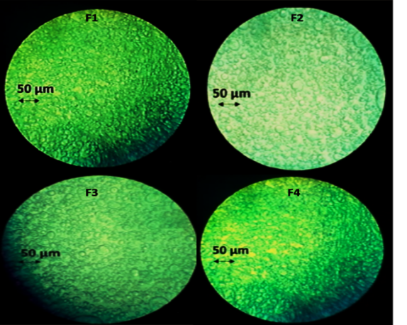 Fig. 1 Microscopy of Bigel batches B1, B2, B3, B4, Bigel's homogeneous structural properties are due to increased gel homogeneity as shown by SEM