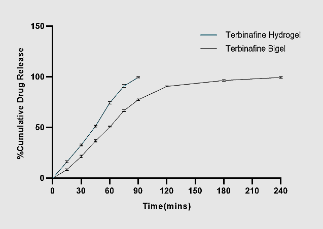 Conclusion: Terbinafine, the drug of preference for the treatment of bacterial vaginosis, demonstrated diffusion-mediated drug release when placed into bigels. In general, the produced bigels might be employed as delivery vehicles for drugs delivered vaginally.