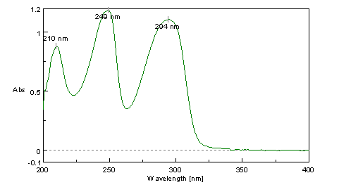 The wavelength selected was 294 nm based on the UV spectrum taken at a concentration of 20 µg/ml. The UV spectrum is shown in fig. 2.