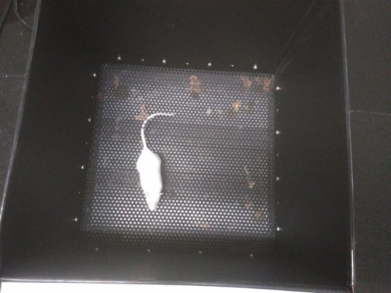 Photoelectric cells were used in this device, which is coupled to a circuit with a counter. When the animal cuts off the beam of light falling on the photocell, a count was made. The animal moves in a square arena in an actophotometer. Before the test, each mouse had to be weighed. The mice were individually placed in the activity cage for 5 min after the equipment was turned on. All the animals' basal activity scores were recorded [13, 14] [fig. 3, 4].