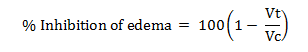 Where Vc is the edema volume in the control group and Vt is the edema volume in the tested group. The difference between the initial and subsequent reading gives the actual edema volume [11].