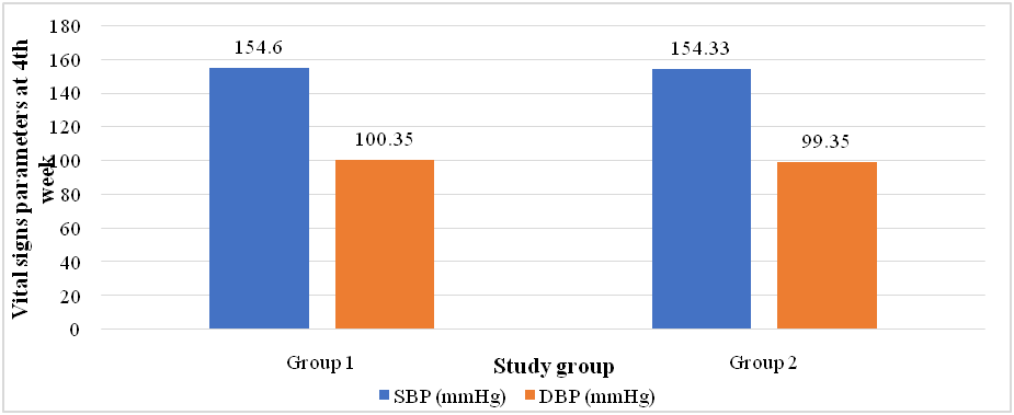 Fig. 3: Comparative bar chart of the mean of vital signs parameters at the 4th week between group 1 and group 2