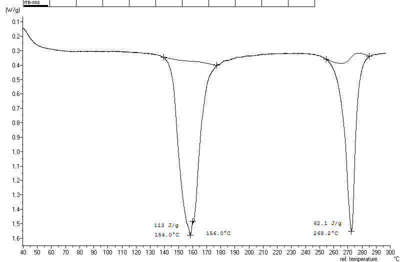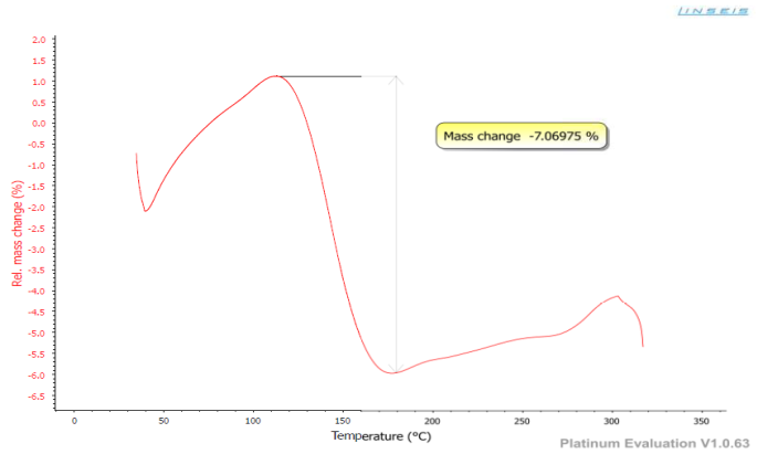 Analysis performed by using DSC–TGA/DTA weighing 3–7 mg samples in a cup then put into special aluminium for analysis. Sample heated with heating rate 10 °C/min under nitrogen gas stream. Heat flow measurements carried out at a temperature of 30–350 °C.