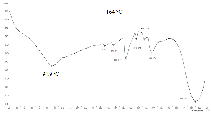 Initial characterization using DTA yielded the thermogram which showed dehydration of sodium sulfacetamide at 164 °C (fig. 5) and neomycin sulphate at 94.9 °C (fig. 6) thoroughly.
