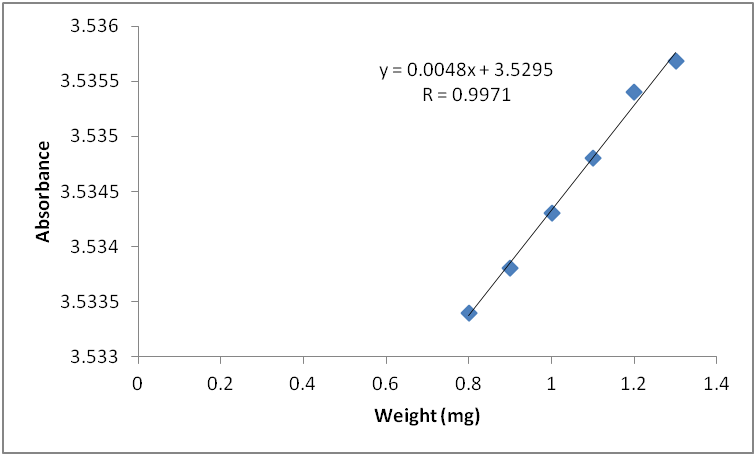 Fig.9: FTIR Calibration graph of sodium sulfacetamide absorbance in different weights