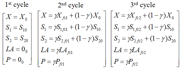 The initial condition for first, second and third cycles are as follows, at t = 0