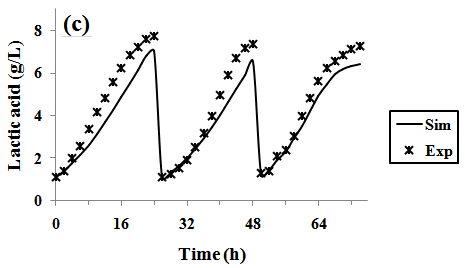 Table 1: The concentrations of biomass, pediocin and lactic acid in repeated fed-batch fermentation for γ of 0.1, 0.2 and 0.3