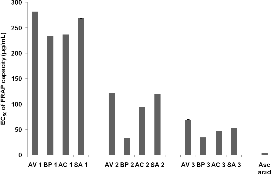 IC50 of DPPH scavenging activity and EC50 of FRAP capacity