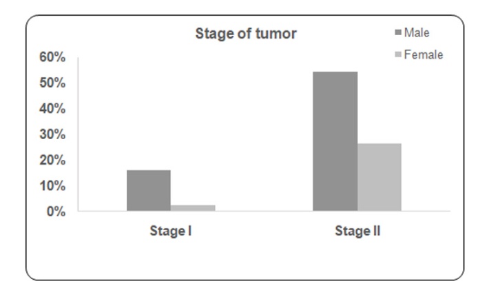 Fig. 3: Distribution of the sample according to stage of the tumor and gender