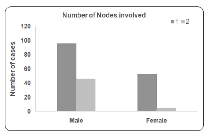 Fig. 6: Distribution of the sample according to number of nodes involved and gender