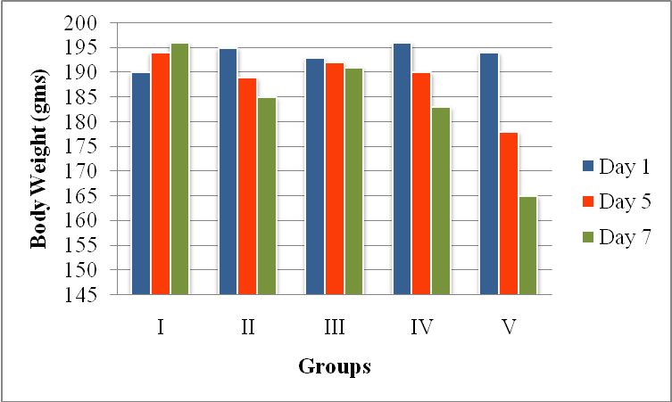 Weight of rats was recorded on the1st, 5th, and 7th day of the study period.