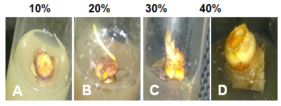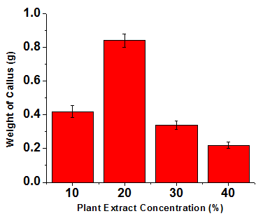 Results: Callus initiation was observed in all concentrations of plant extract. However, the callus grown in 20% plant extract resulted in direct organogenesis. But callus growth was slow at 40% concentration of plant extract.
