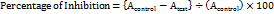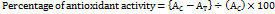 Where AC–is the absorbance of the control, AT–is the absorbance of the test sample.