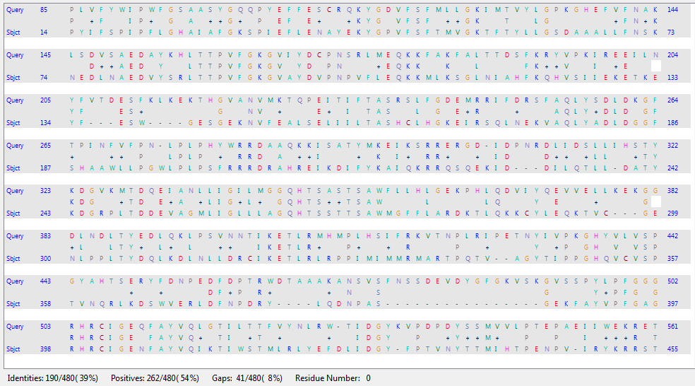Fig. 2: Alignment of amino acid sequence of CA-CYP51 (P10613) and human CYP51 (3LD6_B)