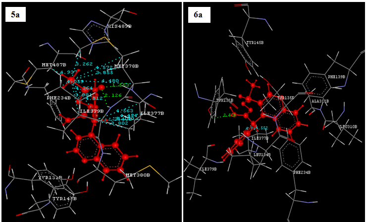 | 5b | -62.30 | 2 (TYR 145) | 6 (LYS156, ILE377, HIS447) |