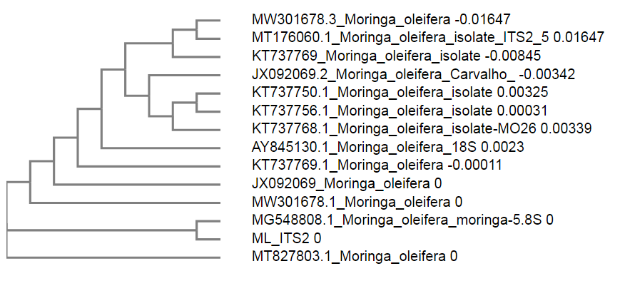 | 1 | Moringa ITS2 | Moringa oleifera ribulose-1,5-bisphosphate carboxylase/oxygenase large subunit | JX091932.1 | 98% | 0.0 | 82% |
