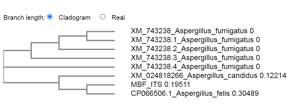 Fig. 9: Phylogenetic tree showing relation of Aspergillus fumigatus strain obtained using Clustal Omega