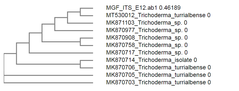 Fig. 10: Phylogenetic tree showing relation of Trichoderma turrialbensestrain obtained using Clustal Omega