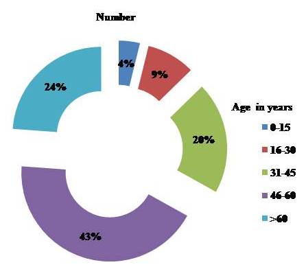 Table 1: Age-wise distribution of all samples (numbers and percentage)