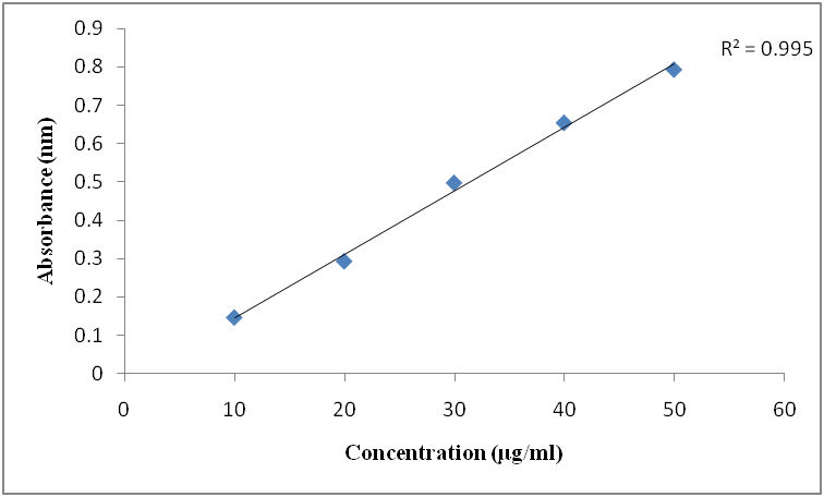 The calibration curve of lafutidine show linearity over concentration range 10-50 µg/ml with a regression coefficient (R2) value 0.9959