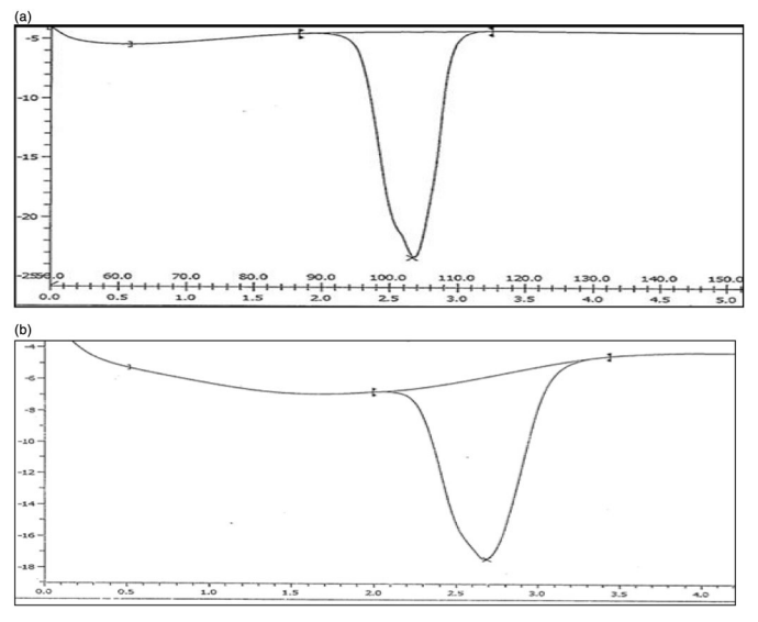 The physical mixture of lafutidine along with its excipients also exhibits the melting point transition peak at 99.8 °C, which has confirmed that there were no compatibility issues among the drug and excipients used.