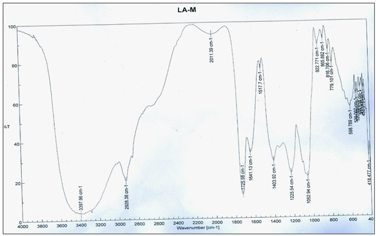 Fig. 1: Chromatogram showing the FT-IR Spectrum of L. acidissima fruit methanol (LA-Me) extract