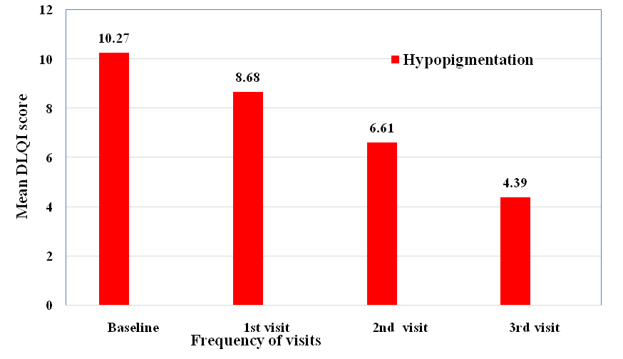 Conclusion: This study has helped in determining the different patterns of drugs used in hypopigmentary disorders and their positive impact on QOL. The individualized prescribing pattern could improve the clinical and psychosocial outcome of the disease in the future.