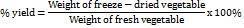 The vegetables were prepared using a procedure like that used to prepare these vegetables for consumption in Ghana [14]. Each fresh vegetable (10 g) was boiled in 100 ml of distilled water for 10 min, allowed to cool, and blended with the water used for boiling. The samples were freeze-dried (using Labconco Free Zone 6.0; Labconco Corporation, Kansas City, MO, USA) and kept at-20 °C. The percentage yield of the samples was calculated using the following equation: