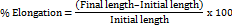 When stress is applied to the film (2 cm x 2 cm), it elongates or stretches, which is referred to as strain and can be described as the deformation of the film before it breaks due to stress. It is calculated by comparing the length of the film before and after the stress is applied. The following formula can be used to calculate % elongation.