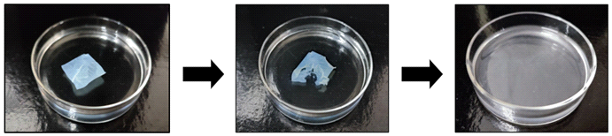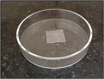 The disintegration time of the films was determined using the petri-plate method. A petri plate was filled with phosphate buffer pH 6.8 (10 ml) and a film (2 cm × 2 cm) was placed in it. The duration of time taken for the film to totally disintegrate was recorded.