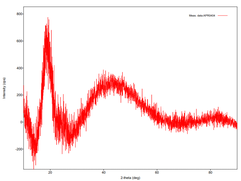 The amorphous form of the drug present in the film, as shown in fig. 28, was confirmed by the diffractogram of the optimised film containing Glimepiride solid dispersion, which did not exhibit any crystalline peaks of the drug.