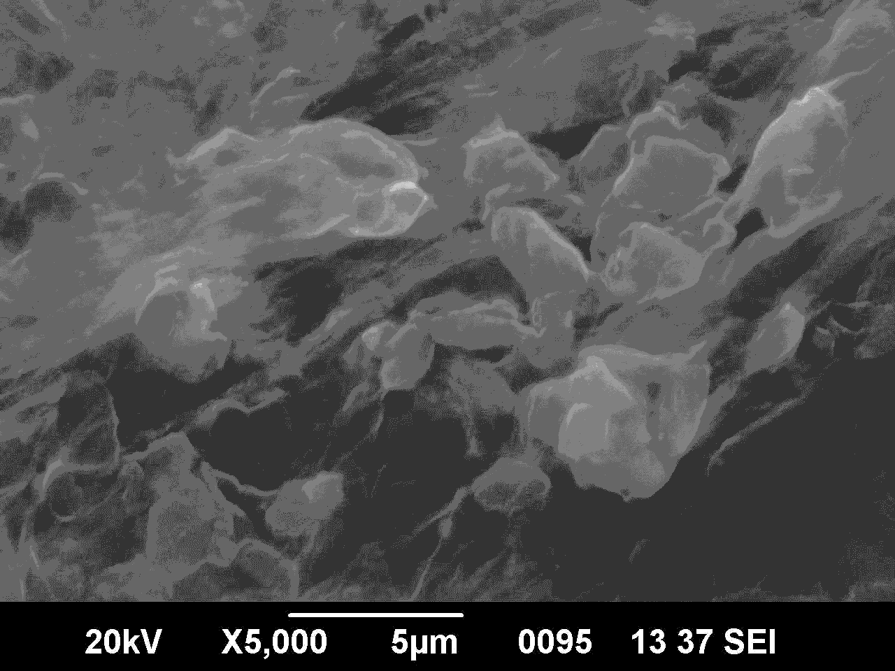 The surface morphology of the optimised solid dispersion (F9) was examined using scanning electron microscope.