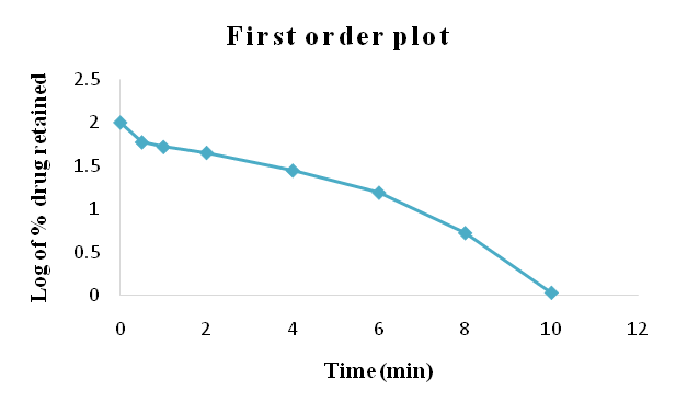 | Time (t) min | Log t | √t | % CDR | Log of % CDR | % Drug remained | Log of % drug remained |