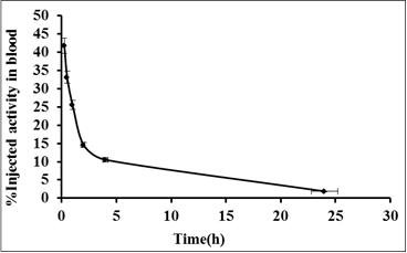Fig. 4: Blood kinetics pattern of 99mTc-DO3A-Act-AQ administered intravenously through the ear vein in normal healthy rabbits