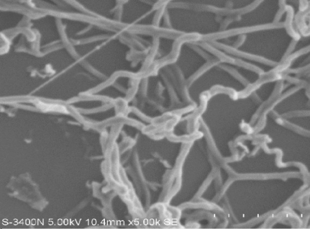 Fig. 2: Scanning electron microscopic analysis of F. oxysporum co-cultured with Streptomyces sp. ACT7