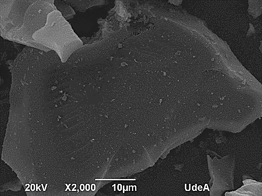 Fig. 2 shows SEM micrographs of the materials at, 2000x magnification. The CBS shows an irregular morphology of particles with slightly rough and planar surfaces, where some small crystals of sodium chloride appear on the surface and were not completely removed during the washing processes. CAM was composed of regular particles with a very rough surface composed essentially of ferric oxide (III) nanoparticles, whereas CA1:3U was composed of irregular particles similar to those of CBS where the surface was slightly rough. The iron nanoparticles exhibited a snowflake shape, having~ 50-100 nm in size. On the other hand, the CAC was composed of particles with a greater number of edges and flat surfaces. These morphological characteristics allow it to be classified as the most important adsorbent in nature, which can house many chemical compounds, such as drugs, heavy metals, dyes, among others. In addition, these properties allow its use in the pharmaceutical field, and it is used as an antidote in drug poisoning [24].