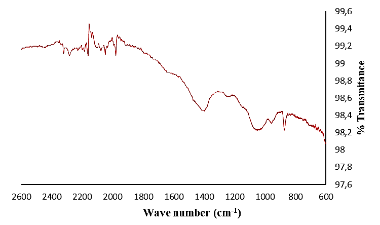 The IR characterization was conducted on a FT-IR spectro-photometer (Nicolet, Thermo Fisher Scientific, Waltham, Massachusetts, USA) coupled with ATR (Attenuated Total Reflectance) device with readings in a range between 2000 and 600 cm-1 and 16 Scans. Each sample was placed directly on the sample port without any previous treatment.