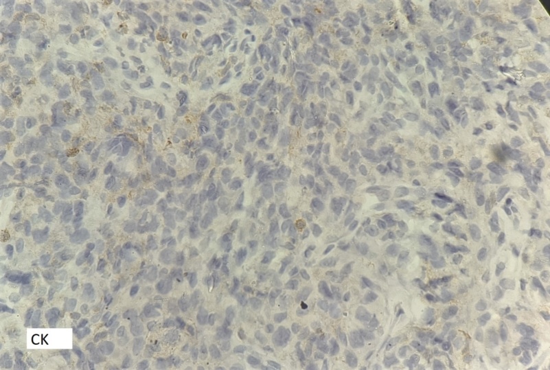 Fig. 2a: On Immunohistochemical staining (IHC), tumor cells were negative for CK(400X)