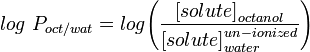 The partition coefficient is a ratio of concentrations of unionized compounds between the two solutions. To measure the partition coefficient of ionizable solutes, the pH of the aqueous phase is adjusted such that the predominant form of the compound is unionized. The logarithm of the ratio of the concentrations of unionized solute in the solvents is called log P [14, 15].