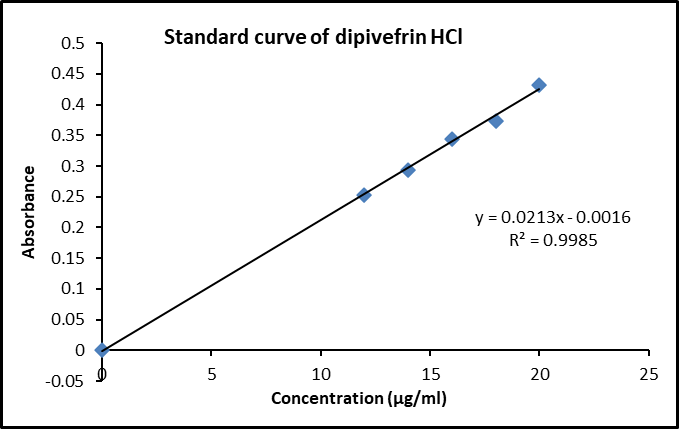 Fig. 2: Standard curve of dipivefrin HCl in PBS pH 7.4
