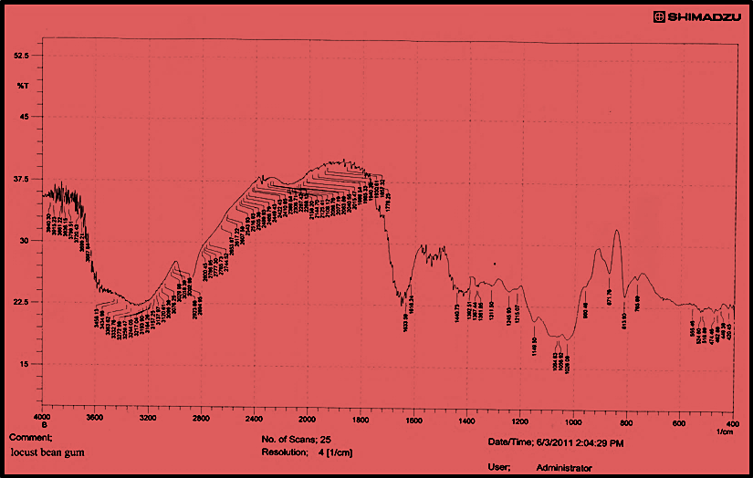 Table 9: Interpretation of FTIR spectra of locust bean gum