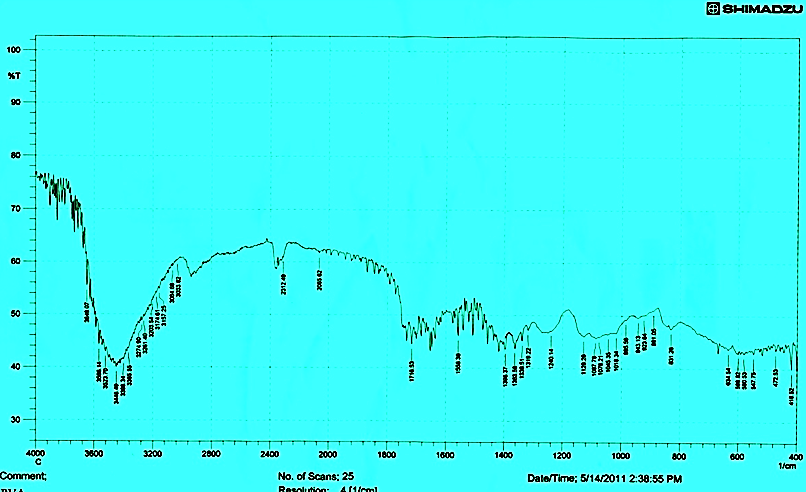 FTIR spectra of locust bean gum, carbopol 934 and a physical mixture of locust bean gum: carbopol 934: dipivefrin HCl in a weight ratio of 1:1:1 was obtained using FTIR spectrometer (FTIR-8400S spectrophotometer, Shimadzu, Japan) and was presented in fig. 4, fig. 5 and fig. 6 respectively and the interpretation of FTIR spectra was shown in table 8, table 9, table 10 and table 11 respectively.